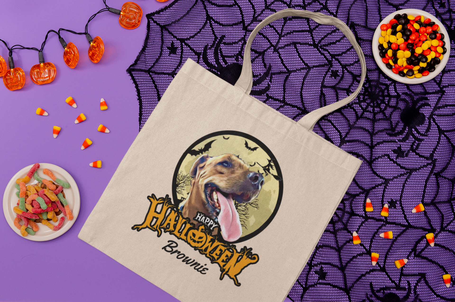 Carry your furry friend in style with our Custom Halloween Pet Tote Bag! The perfect accessory for trick-or-treating with your pet this spooky season. With its unique design and customizable options, your pet will be the talk of the town. Get ready to turn heads and have a howling good time!